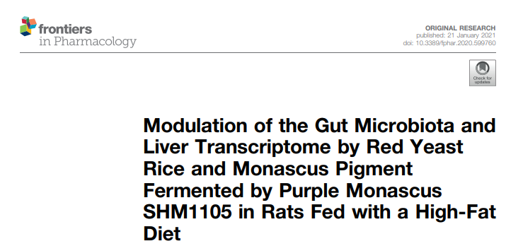近日,三禾生物和天津科技大学研究团队的研究成果《Modulation of the Gut Microbiota and Liver Transcriptome by Red Yeast Rice and Monascus Pigment Fermented by Purple Monascus SHM1105 in Rats Fed with a High-Fat Diet》在国际权威期刊《Frontiers in Pharmacology》杂志上发表,该杂志是国际药学领域的前沿期刊。