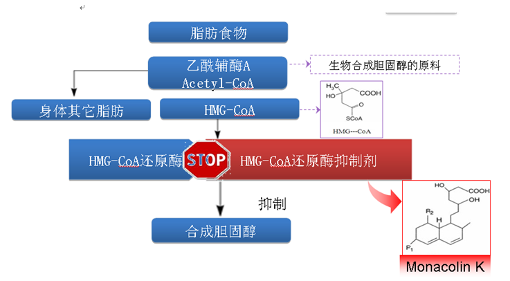 1.1. 功能性红曲中有效抑制胆固醇合成的机制: