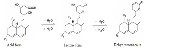 Monacolin K开环(acid form)、 闭环(lactone form)和脱水后结构变化